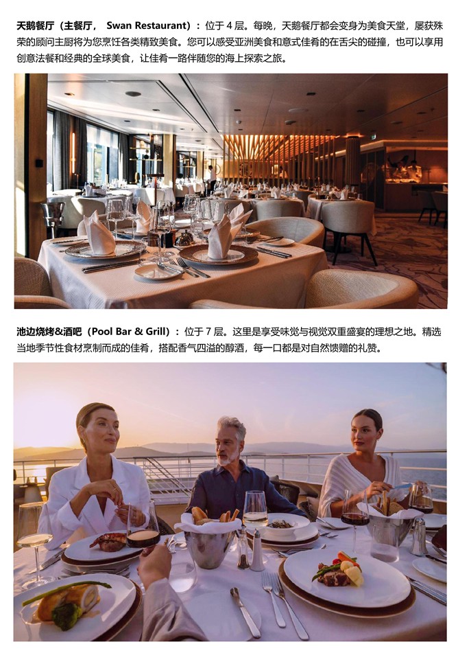 邮轮概况:排水量 12255 吨,载客量 192 人,首航 2023 年,五星奢华