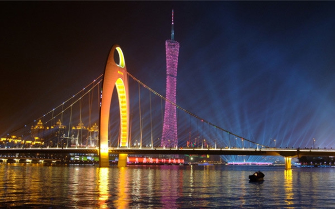 广州有着“一湾溪水绿,两岸荔枝红”的美景。沿着这珠江水,漫步于一条全新的珠江两岸景观长廊,华灯初上,欣赏流光溢彩的广州城市美景。正所谓“船在江中走,人在画中游”。珠江美景可媲美于香港维多利亚港,其景色迷人,碧水潋艳,华灯闪烁,犹如七色明珠镶嵌十里珠江,汇成一条异彩纷呈的珠江彩虹。沿江可观赏到“鹅潭夜月”、“双桥烟雨”、“珠海丹心”、“珠江秋月”、“珠水晴波”等羊城美景,参考行程:码头→海印桥→广州大桥→广州塔(人工瀑布)→猎德大桥→琶洲会展中心→掉头→海心沙(亚运会场)→珠江新城广场(双子星塔)→二沙岛→星海音乐厅→海印桥→码头。