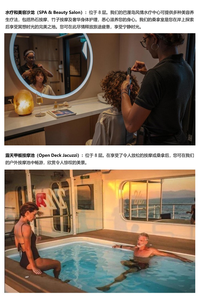 邮轮概况:排水量 12255 吨,载客量 192 人,首航 2023 年,五星奢华