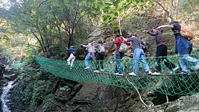午餐后乘车前往林峡谷的“探险之王”,赏笔架山脉稀有的高空奇瀑,【笔架山千谷溪-九重飞瀑】,经山泉水千万年冲刷天然而成,全长 3.5 公里,常年水流充沛、林荫茂密,由奇石深潭、清溪碧水、九重飞瀑、飞跃银河、深山飞跃及众多溪林特色探险体验组成,被誉为溪林峡谷的“探险之王”。 九重飞瀑高约 208 米,是笔架山脉稀有的高空奇瀑,巨大的水幕如银河飘雪从山峰中飞泻层叠而下,气势磅礴,极其壮观。“香炉瀑布遥相望,回崖沓嶂凌苍苍,”瀑布两侧峻崖环绕,峰峦重叠,犹如世外桃源一般屹立于此。约16:30乘车返广州,结束愉快的行程!