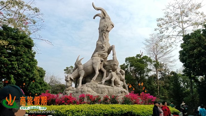五羊石像,母羊口衔稻穗,四只小羊环绕,象征广州丰饶与祥和。是广州城市形象的核心标志。